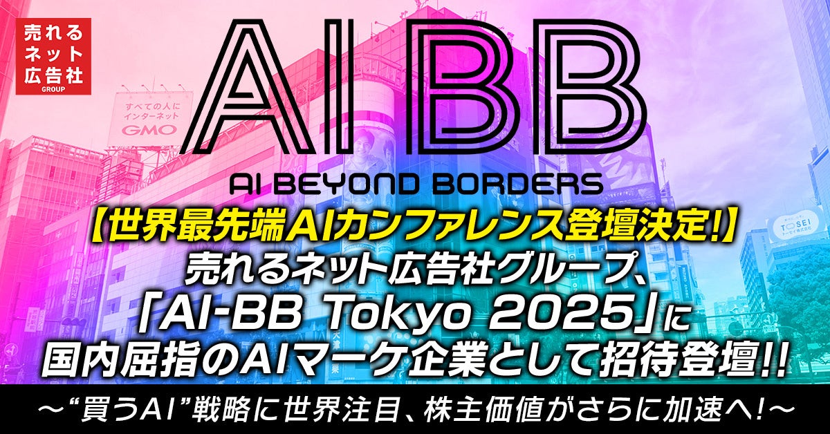 【世界最先端AIカンファレンス登壇決定!】売れるネット広告社グループ、「AI-BB Tokyo 2025」に国内屈指のAIマーケ企業として招待登壇~“買うAI”戦略に世界注目、株主価値がさらに加速へ~