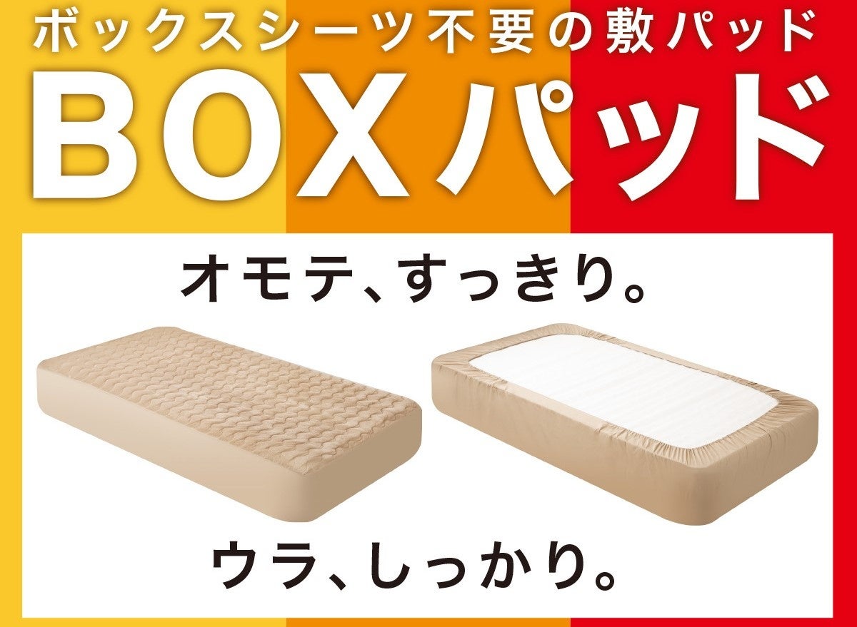 昨年大好評いただいたシーツと敷パッドが一体化したBOXパッド。見た目スッキリで包みこむからズレない。かさばりがちな冬物寝具のお洗濯も、これ一枚で済ませることができます。