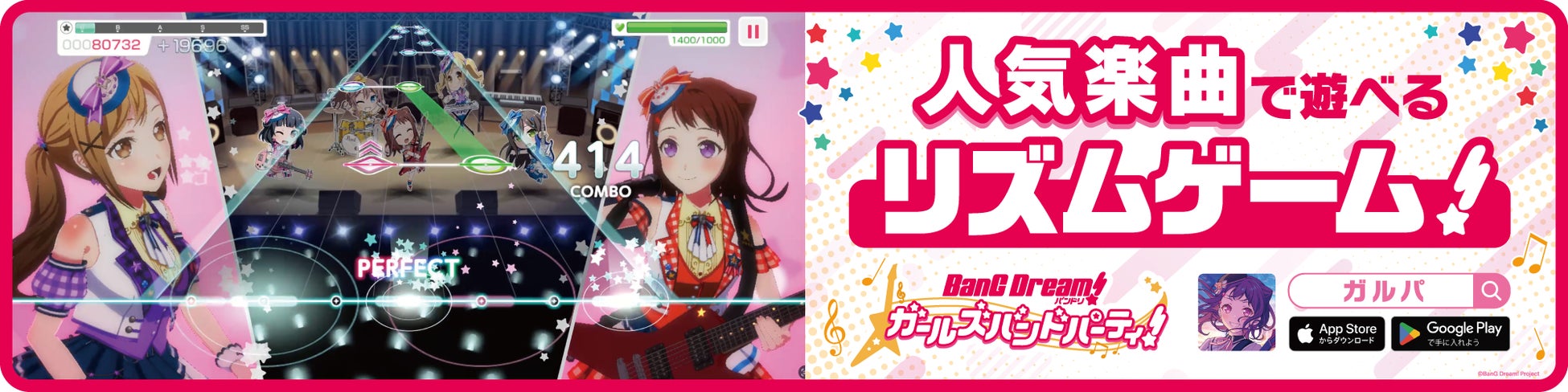 「バンドリ! ガールズバンドパーティ!」は、キャラクターとリアルライブがリンクする次世代ガールズバンドプロジェクト「BanG Dream!(バンドリ!)」の世界観を軸に展開される、リズム&アドベンチャーゲーム。