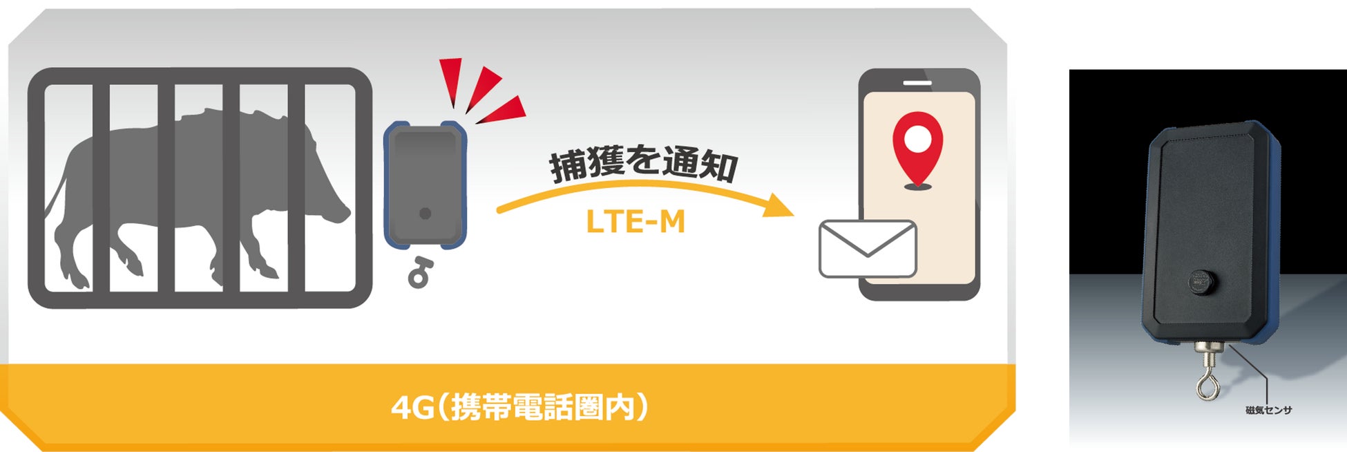 「マタギっ娘 LTE-M版」は、これらの問題を解決する市場のニーズにあったシステムです。携帯電話の電波を使用することにより、親機・基地局が不要であり、プリペイドSIMの採用により毎月の通信費をゼロ(*1)としたことが大きな特長で、罠検知ボックスを購入すれば、すぐに運用を開始でき、初期費用を抑えることが可能です。また、罠検知ボックスは小型軽量で持ち運びやすく、わなへの設置が容易であり、マグネットの着脱だけで遠隔監視の準備が整うといった点が高く評価され、今回の導入につながりました。