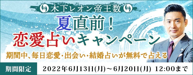 テレシスネットワーク株式会社(本社:東京都港区、代表取締役:鷹石惠充 https://www.telsys.co.jp/)は、2022年6月13日(月)より、月額公式サイト『木下レオン◆帝王数』にて、『木下レオン帝王数 夏直前!恋愛占いキャンペーン』を公開いたします。