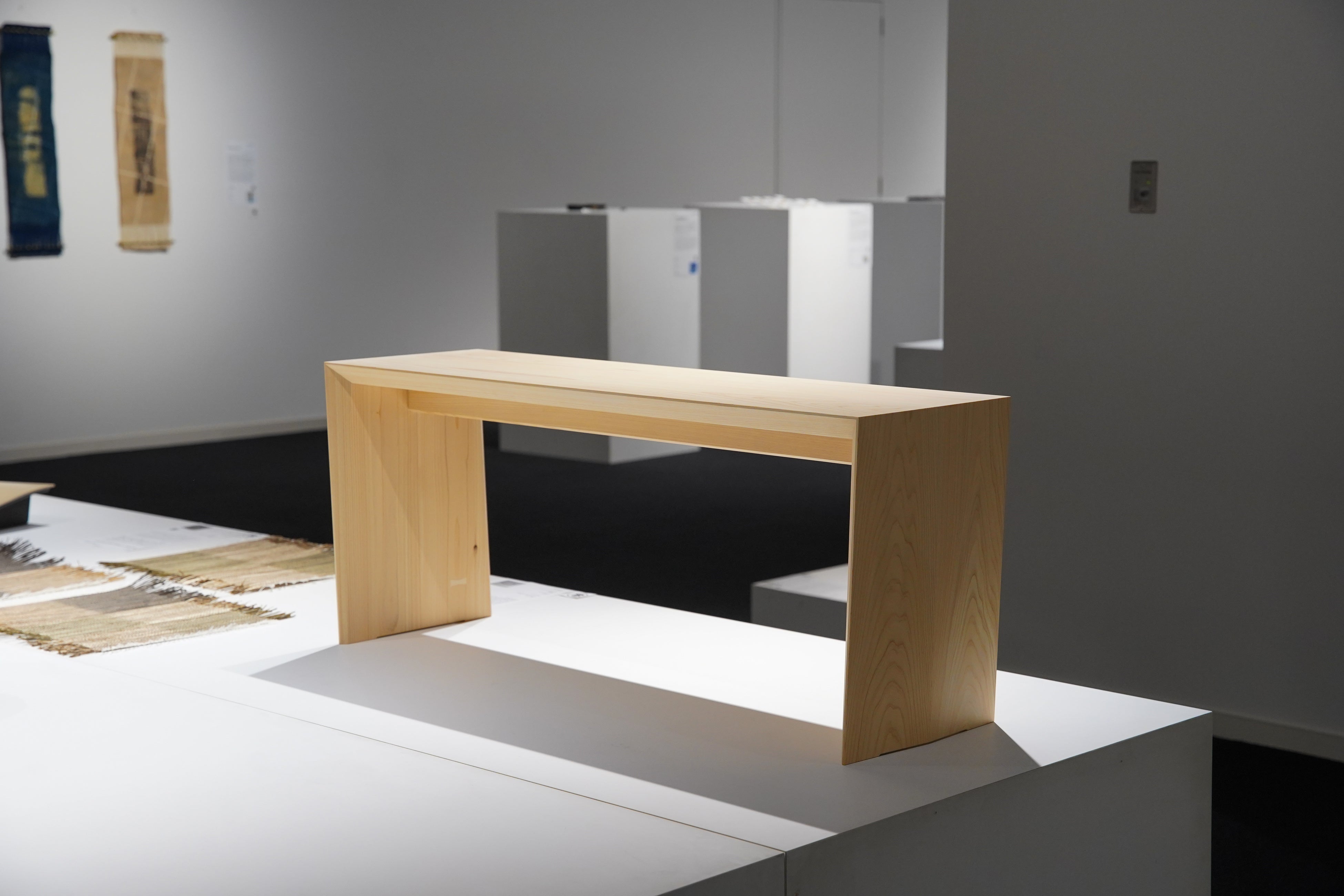 作品概要: 京都府産のヒノキを使用した、シンプルながらも緻密な設計の二人掛けベンチ。