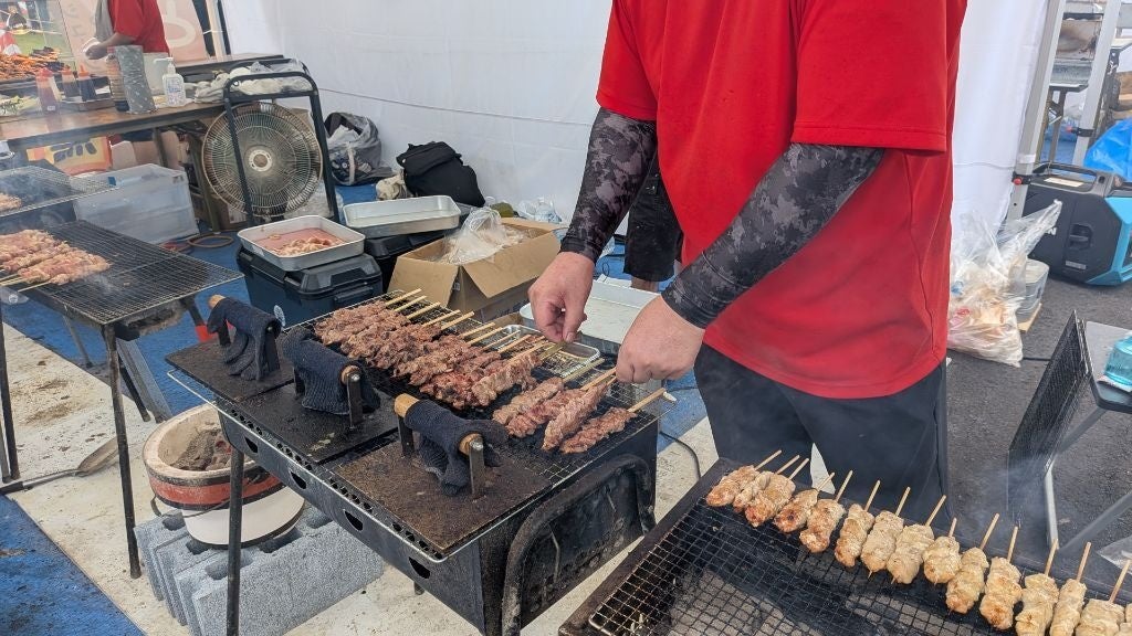 県産のブランド鶏を使用したメニューも好評で、来場者からは「鳥取地どりピヨの串は歯ごたえがあり、旨味がすごい。」「大山どりの焼き鳥がジューシーで美味しかった。」といった声が寄せられ、正午過ぎには一部メニューが完売するなど大盛況となりました。