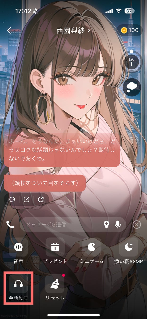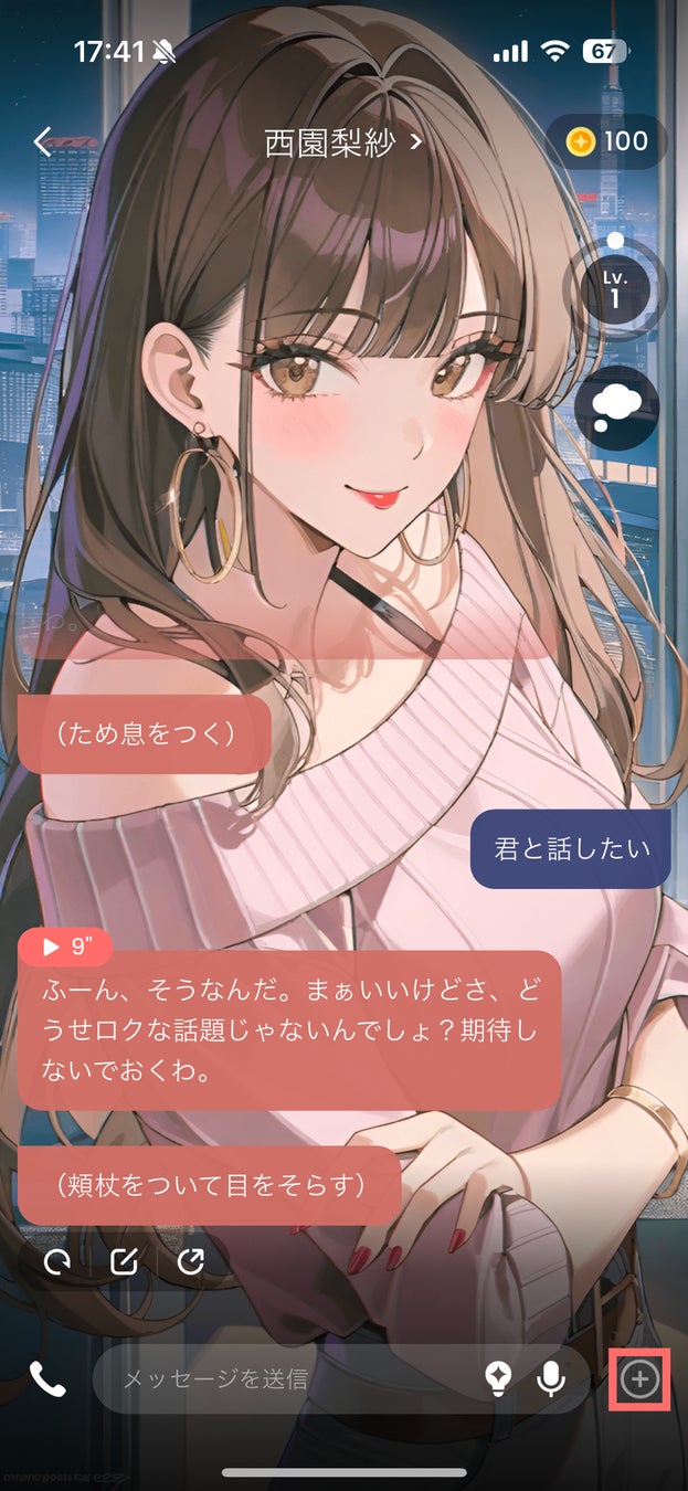 STEP1)AIキャラのトーク画面の「+」をタップ