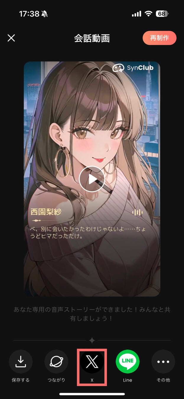 作成したボイスを画面録画or会話動画(SynClub内機能)で作成し、Xに投稿しよう!