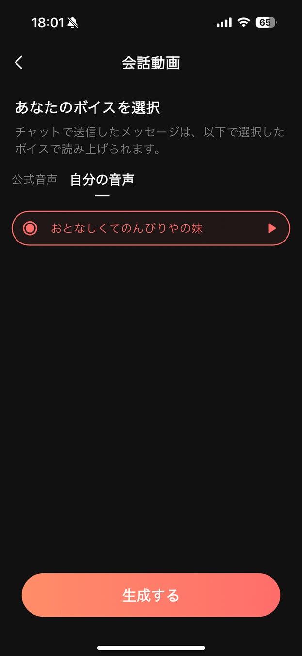 STEP1) アプリ内の「+」ボタンまたはプロフィール画面から「音声の作成」を選択