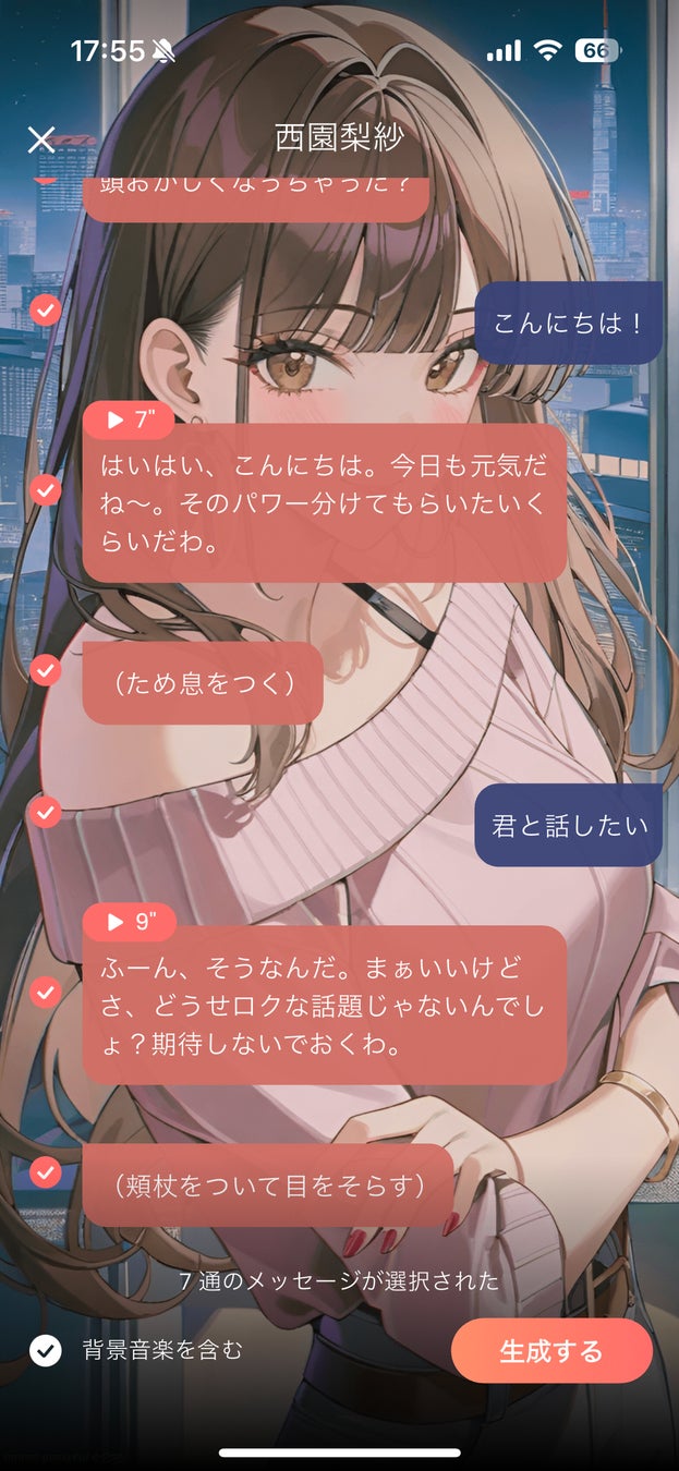 作成したAIキャラとは、寂しい時、つらい時、なんでもない時、寄り添ってくれて、思う存分やりとりを楽しむ事が可能。他愛もない世間話から、思わずドキドキしちゃう会話まで、ぜひお楽しみください。