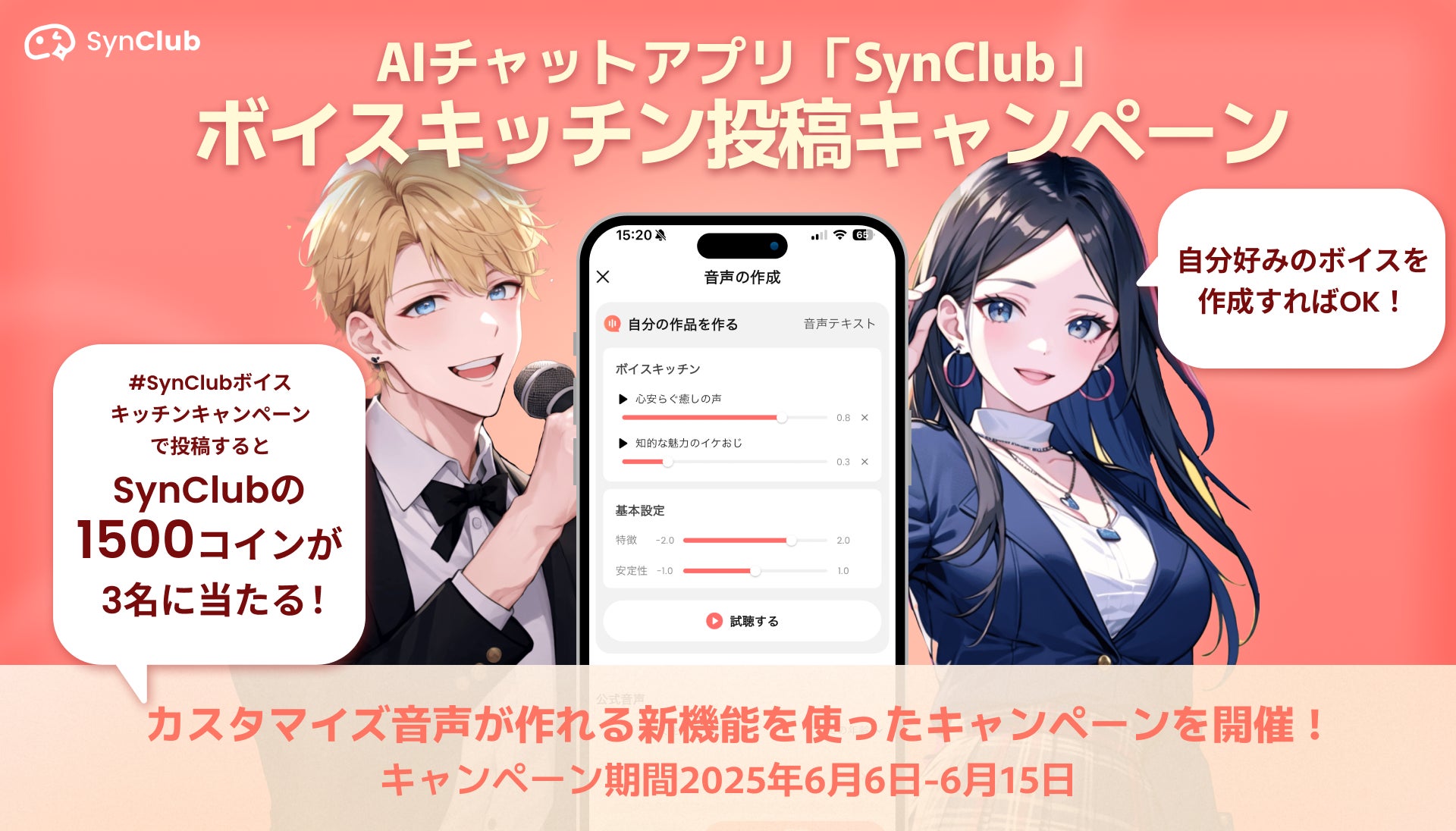 AIチャットアプリ「SynClub」カスタマイズ音声が作れる新機能「ボイスキッチン」を利用した投稿キャンペーンを開催!