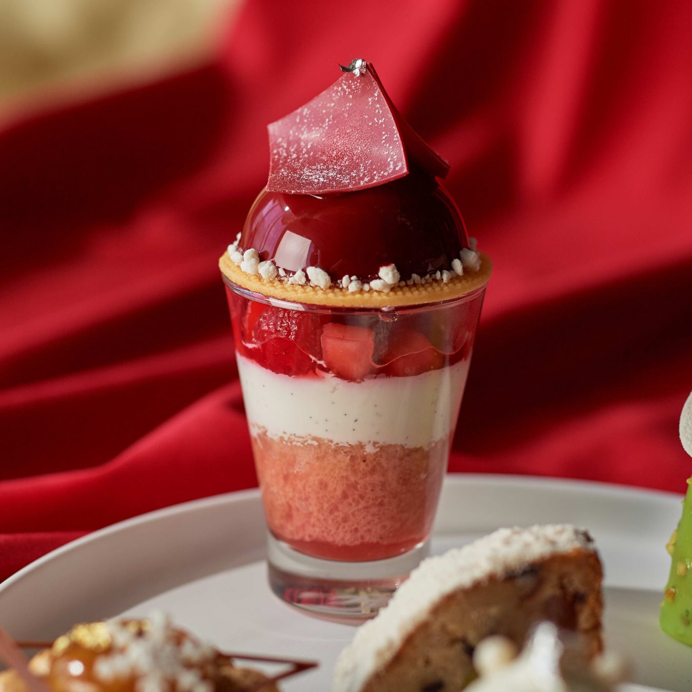 艶めく真っ赤な曲線が目を引くグラスデザート、雪の結晶やオーナメントをあしらった、上品さの中にも遊び心溢れるスイーツは、これから迎えるクリスマス気分をより一層高めます。セイボリーにはフランスのフエスティブシーズンに欠かせない食材にトリュフやフォアグラを添え、贅を尽くしたアフタヌーンティーに仕上げております。この時季ならではの高揚感に浸るひと時をTHE LOUNGEでお過ごしください。