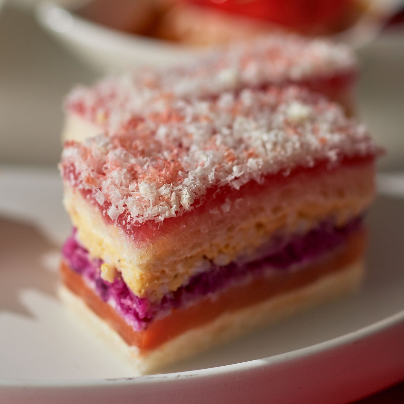 真っ赤な絨毯の上に、降りしきる粉雪をイメージしたロマンティックなサンドイッチです。スモークがしっかりときいたサーモンに、米酢を加えた紫キャベツのまろやかな酸味とクランベリーの果実味、粉雪に見立てたチョコレートからはほんのりと優しい甘みが続きます。ホテルのバンケットシェフが手掛ける、小さいながらも複雑な味わいと絶妙なバランスを是非この機会にお試しください。