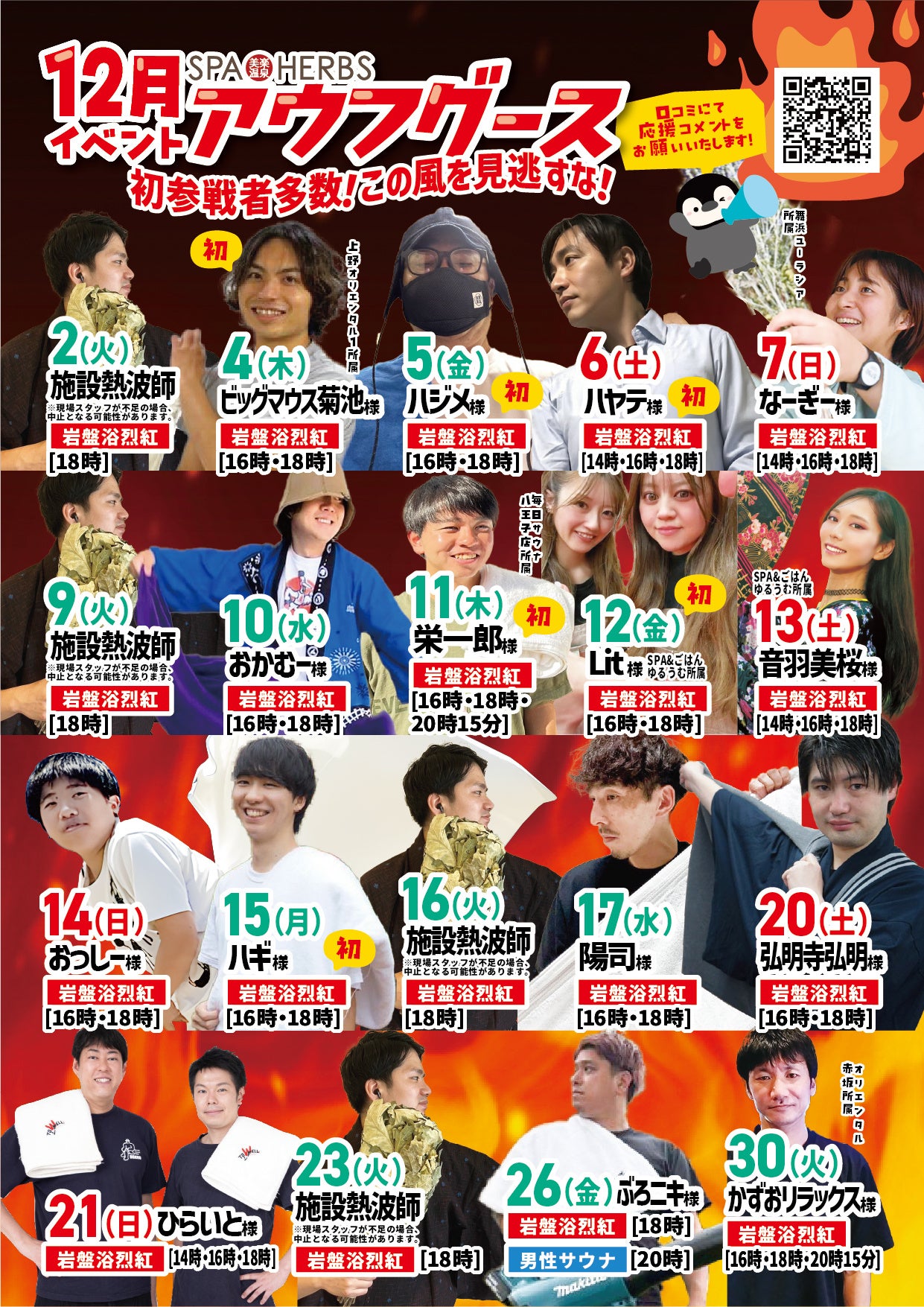 美楽温泉 SPA-HERBS 12月は特別企画が盛り沢山! ゆず寄付で入浴無料券進呈 ~ お客様とつくる冬至の『ゆず湯』~『サウンドヒーリング岩盤浴』開催&連日アウフグースには初登場の熱波師が続々参戦