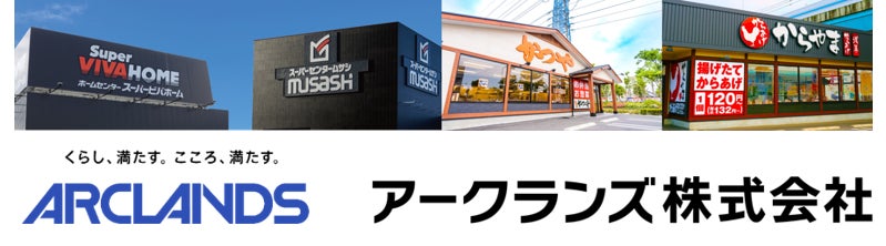 アークランズ株式会社は「くらし、満たす。こころ、満たす。」をスローガンに業界をリードする生活価値提供グループを目指し、ホームセンターの「ムサシ」、「ビバホーム」、とんかつ専門店「かつや」、からあげ定食専門店「からやま」等の「住」と「食」に関わる事業を展開します。独自の進化と変化を続ける事で専門性を極め、お客様の「もっとくらしを豊かにしたい」というおもいにお応えします。