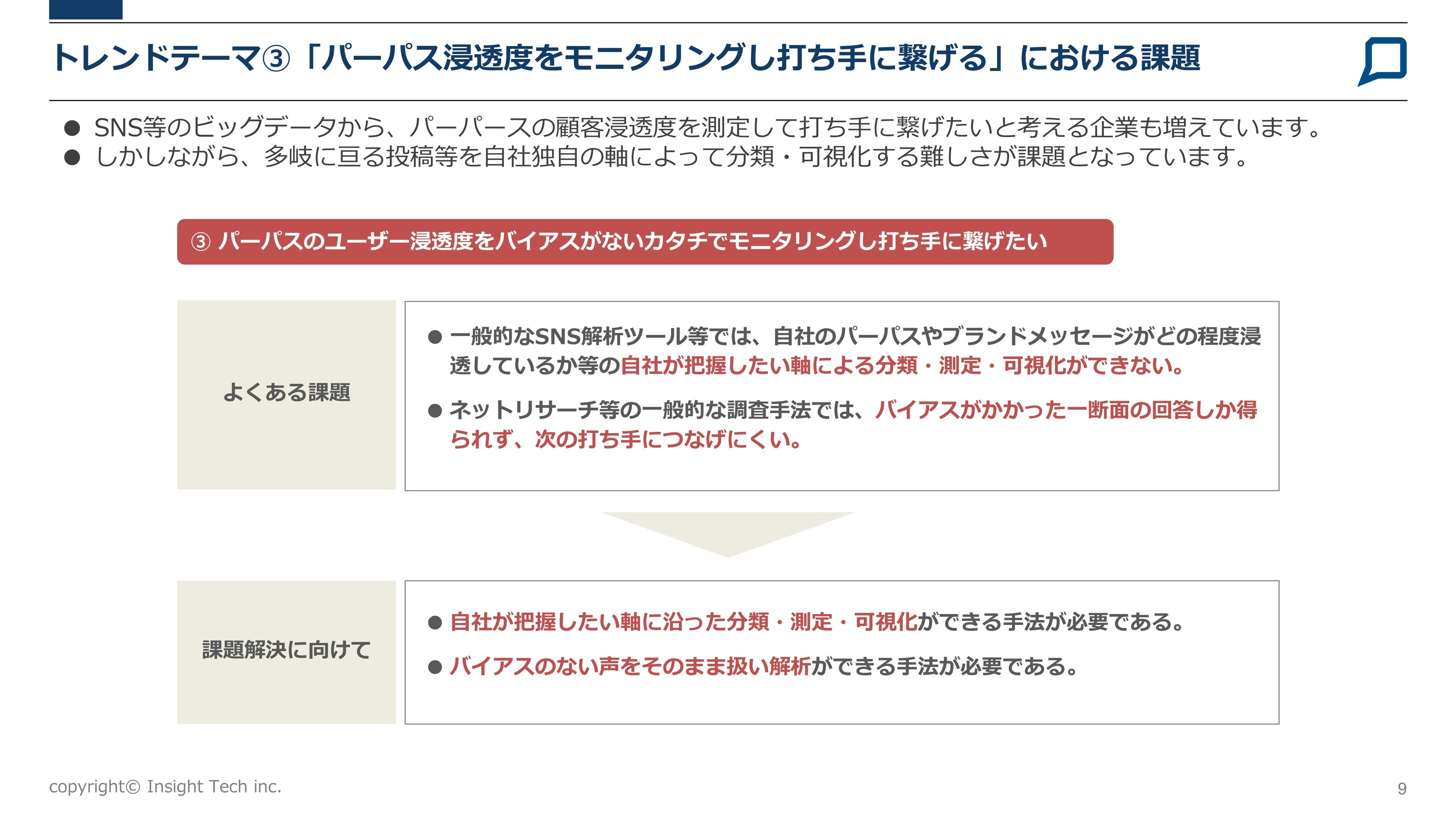 パーパスのユーザー浸透度をバイアスがないカタチでモニタリングし打ち手に繋げたい
