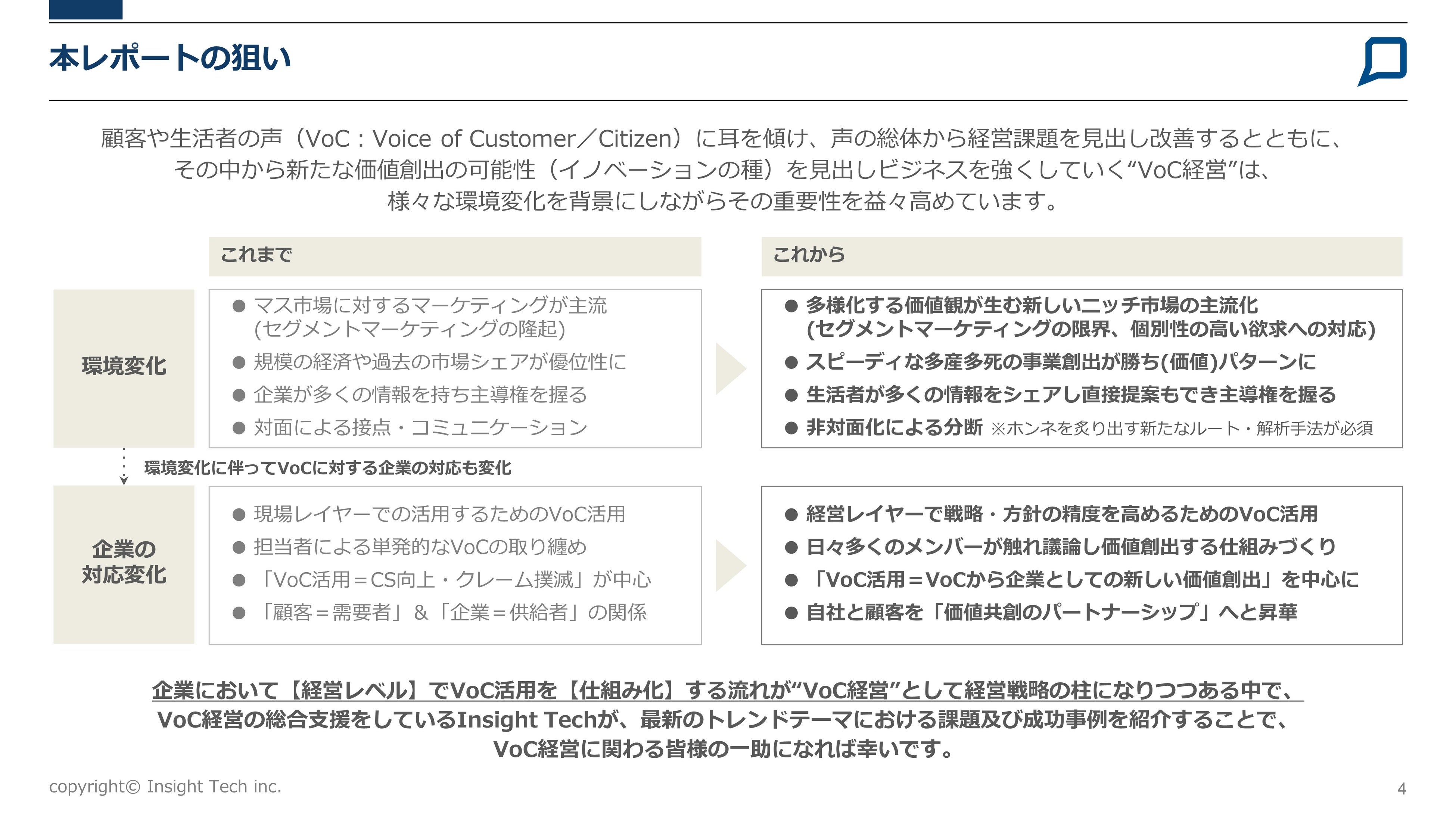 VoC経営を支援するInsight Techが、VoC経営実践における最新のトレンドテーマと成功事例をまとめた「VoC経営レポート」を公開