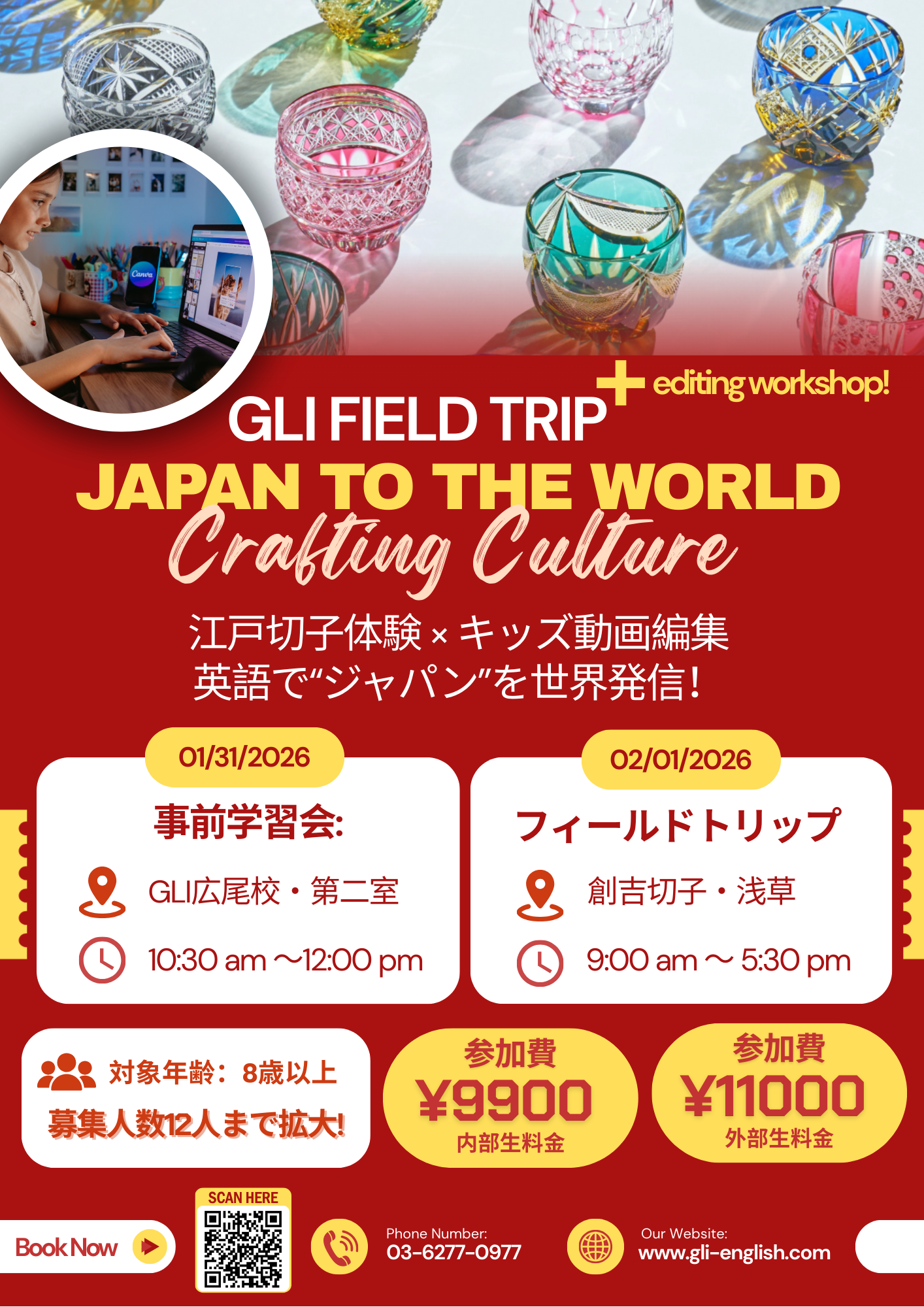 今回のフィールドトリップでは、東京・浅草にて日本の伝統工芸「江戸切子」を体験します。GLIがこの体験に江戸切子を選んだ理由は、世界から高く評価される「日本の美」が、伝統技術とその背景にある物語によって支えられているからです。単なる見学や制作にとどまらず、体験の様子を自ら撮影し、簡単な動画編集スキルを学び、完成した作品と学びを英語で世界に向けて発信します。実体験とアウトプットを通じて、日本文化の価値を自分の言葉で語れる力を育みます。