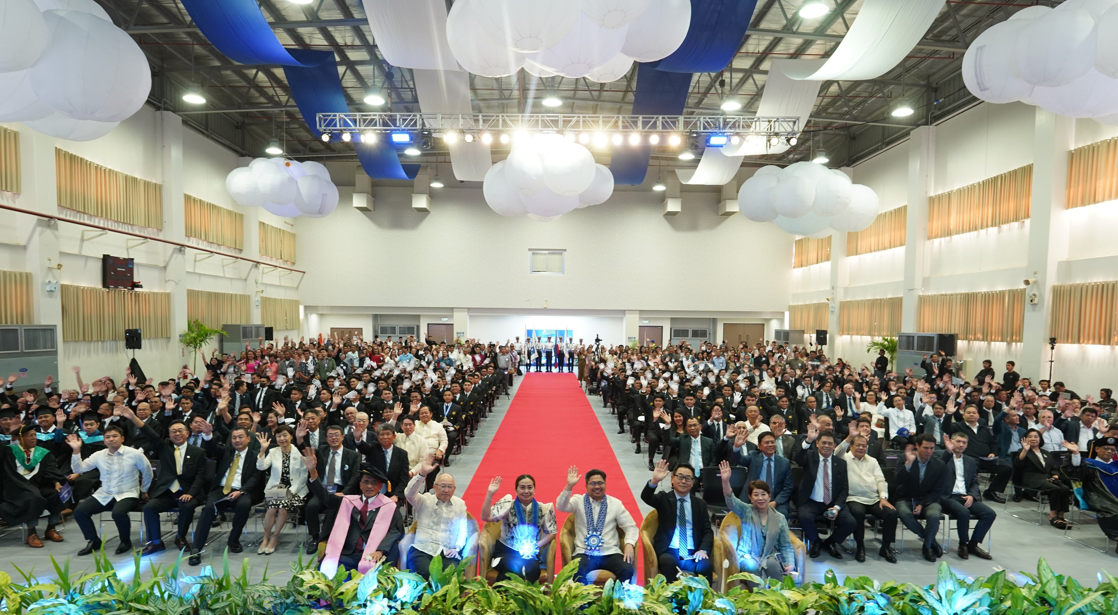式典は、ロン・サロ下院議員や、越川駐フィリピン日本国特命全権大使ら多数の来賓を迎え、MMCの持株会社である「A. Magsaysay, Inc.」のドリス・マグサイサイ・ホーCEO兼社長、当社社長の橋本や関係者など約600名が出席する中で開催され、乗船訓練を含む全てのカリキュラムを修了した第1期生(註3)の門出を祝いました。