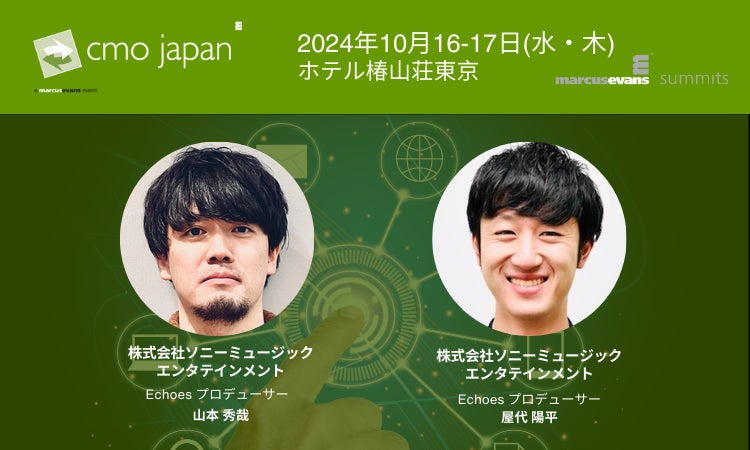 マーカス・エバンズ・イベント・ジャパン・リミテッド (本社: 英国/ 日本支社代表: 雪下 大輔、以下「マーカスエバンズ」) が主催するマーケティング部門向けビジネスサミット『CMO Japan Summit 2024』に株式会社ソニーミュージックエンタテインメントの山本 秀哉氏、屋代 陽平氏の特別講演が決定しました。