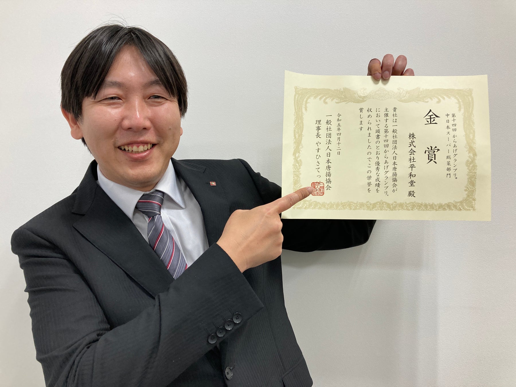 株式会社平和堂(滋賀県彦根市、代表取締役社長執行役員:平松正嗣、以下「平和堂」)のデリカコーナー(惣菜売場)で販売している「E-WA! じゅわ旨!!鶏もも唐揚」が、4月12日(水)に開催された一般社団法人日本唐揚協会(東京都渋谷区、会長兼理事長:やすひさてっぺい)主催「第14回からあげグランプリ® 中日本スーパー総菜部門」にて、金賞を受賞しました。