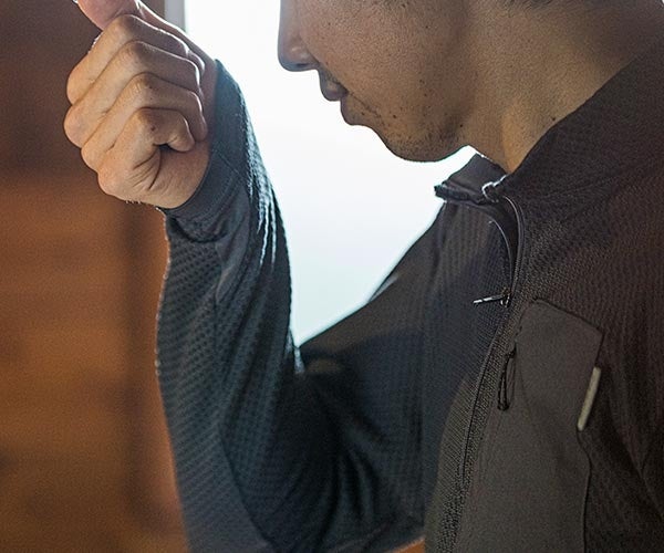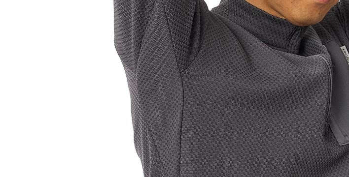 表面側は立体構造、肌側はわずかに起毛処理をすることで、吸汗性と軽量性を損なわずに最大限の保温力を発揮できるように設計しました。finetrackのベースレイヤーの中で最も暖かく、厳冬期の雪山に対応する保温力です。
