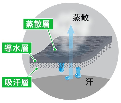 素材のキュプラは湿気を吸いやすく、放出しやすい特徴があり、ウエア内の湿気をコントロールしてムレやベタつきを抑えドライな状態を作ります。
