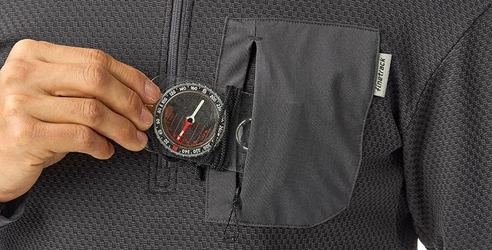 また、finetrackベースレイヤーとしては初となるポケット付きのウエアとなっており、冬山でなるべく肌の近くに保持しておきたいバッテリーや電池等の小物を収納することができます。