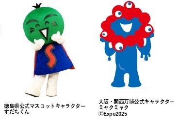 徳島県のマスコットキャラクター「すだちくん」と、大阪・関西万博公式キャラクター「ミャクミャク」が参加。阿波おどりを一緒に踊り、イベントを盛り上げます。