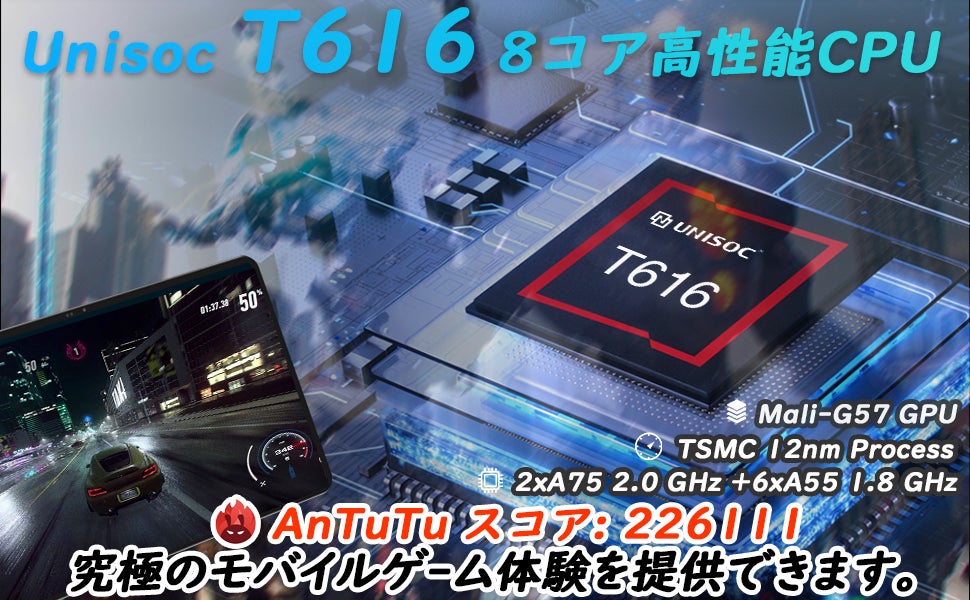 N-ONE NPad pro タブレットは UNISOC T616の強力な8コア高速処理チップを搭載し、UNISOC T616は12nmプロセスを使用し、2つのArm Cortex-A75ハイパワーコアと6つのCortex-A55インテリジェントAIコアを搭載しています。 発熱を抑えながら優れた性能を維持します。 Mali-G52マルチコアGPUはBifrostアーキテクチャベースであり、Vulkan、ES3.2などのグラフィックAPIをサポートし、モバイルゲームのビジュアルをさらに素晴らしい効果でレンダリングします。