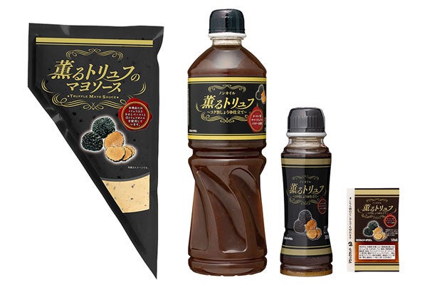 手軽に芳醇なトリュフの香りと贅沢感を楽しめる『薫るトリュフ』シリーズの第3弾です。『薫るトリュフ』シリーズは2020年7月に『薫るトリュフのマヨソース』、2022年7月にノンオイルドレッシング『ノンオイル 薫るトリュフ~コク旨しょうゆ仕立て~』を発売し、メニューの高級感を演出することや付加価値をプラスすることができる点から、幅広い業態で導入され、発売以来好評に伸長しています。