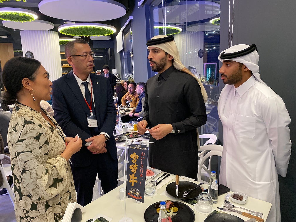 また、当日は在カタール日本国大使館の久島大使にも御出席いただき、「本日参加された皆さんが、このレセプションを通して宮崎牛の素晴らしさを知り、カタールでの宮崎牛の普及に御協力いただき、日本とカタールでのビジネス関係がさらに深まることを望んでおります」とご挨拶いただきました。