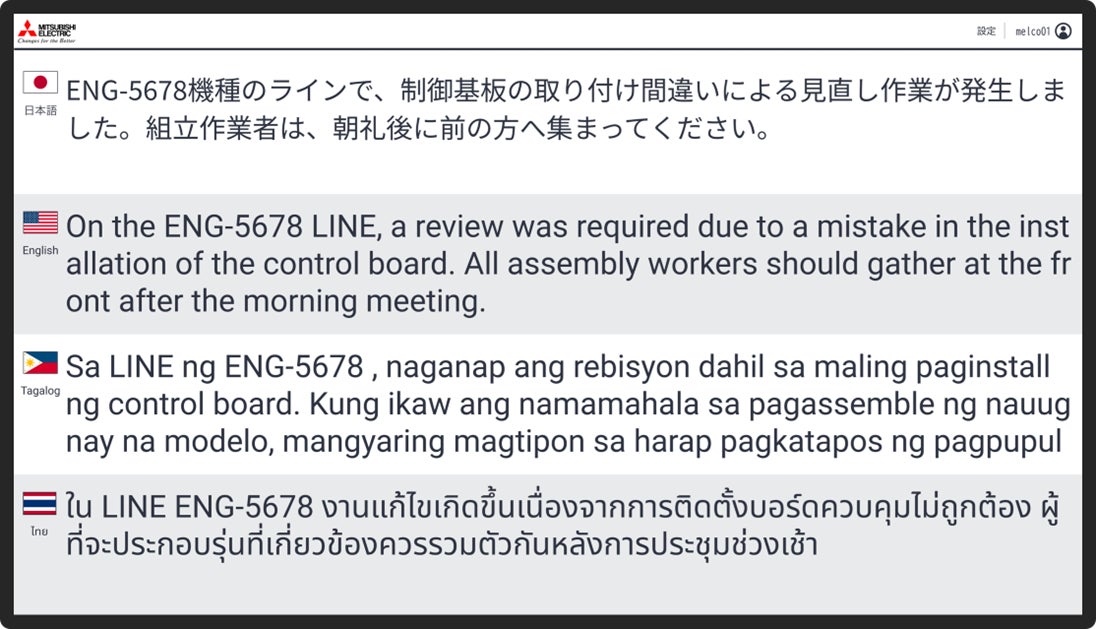 生産現場における言語の壁を解消、多言語表示により大人数にメッセージを正確に伝達