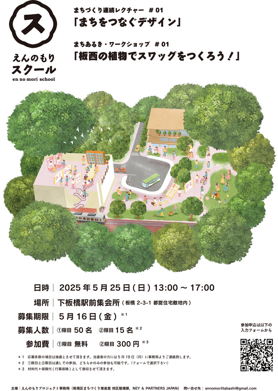 当該プロジェクトの一環として、令和7年5月25日(日)、下板橋駅前集会所(板橋2-3-1都営住宅敷地内)において、「まちづくりに関するレクチャー」及び「まちあるきワークショップ」を実施する「えんのもりスクール」を開催します。