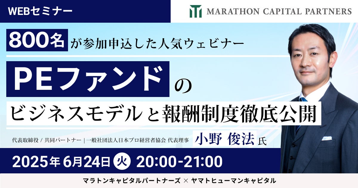 【6/24開催】PEファンドのビジネスモデルと報酬制度徹底公開 | マラトンキャピタルパートナーズ × ヤマトヒューマンキャピタル