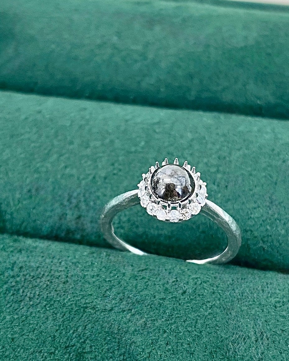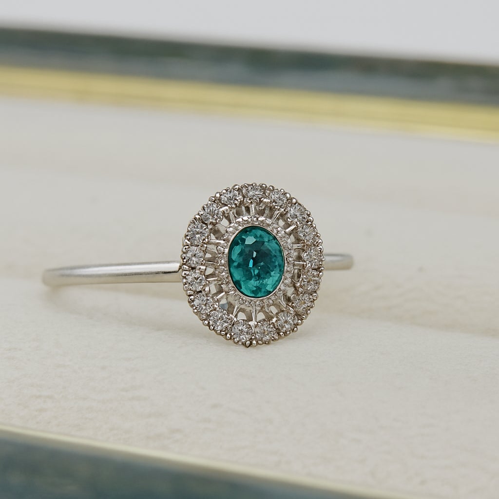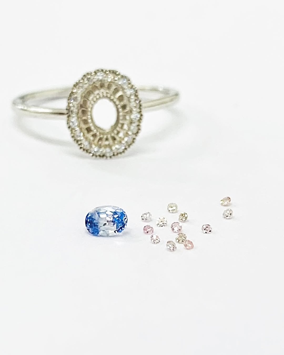 同時開催の「ポンポネ」オーダー会では、ホワイトダイヤモンドに加え、ナチュラルな色彩をもつダイヤモンドやカラーストーンを自由に組み合わせていただけます。取り巻きのやわらかでクラシカルな雰囲気は、ポンポネならではの魅力。お好みの配色で、日常にそっと寄り添う一点物のジュエリーをお仕立てください。