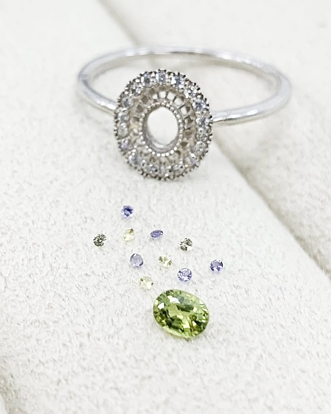 宝石との出会いはもちろん、ご希望に応じてジュエリーへのお仕立ても可能です。お気に入りのルースを見つけたその場で、デザインのご相談やセミオーダーのご案内も承ります。