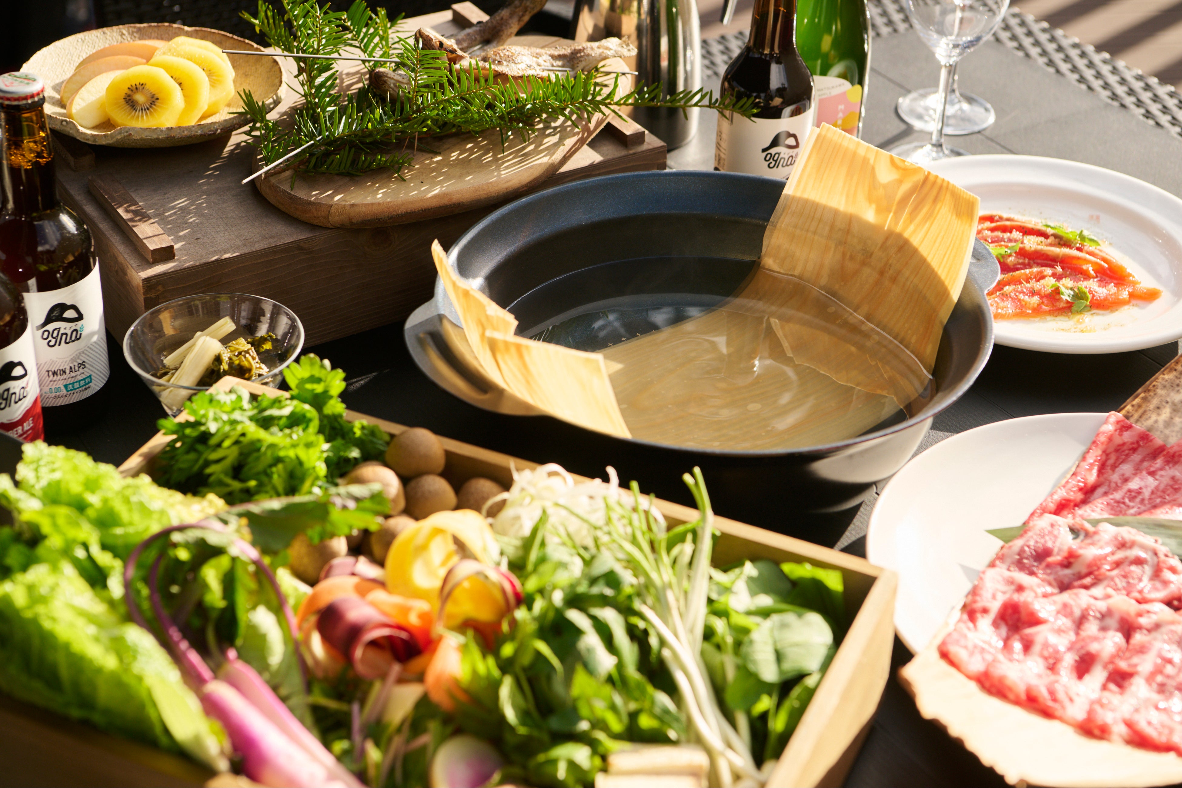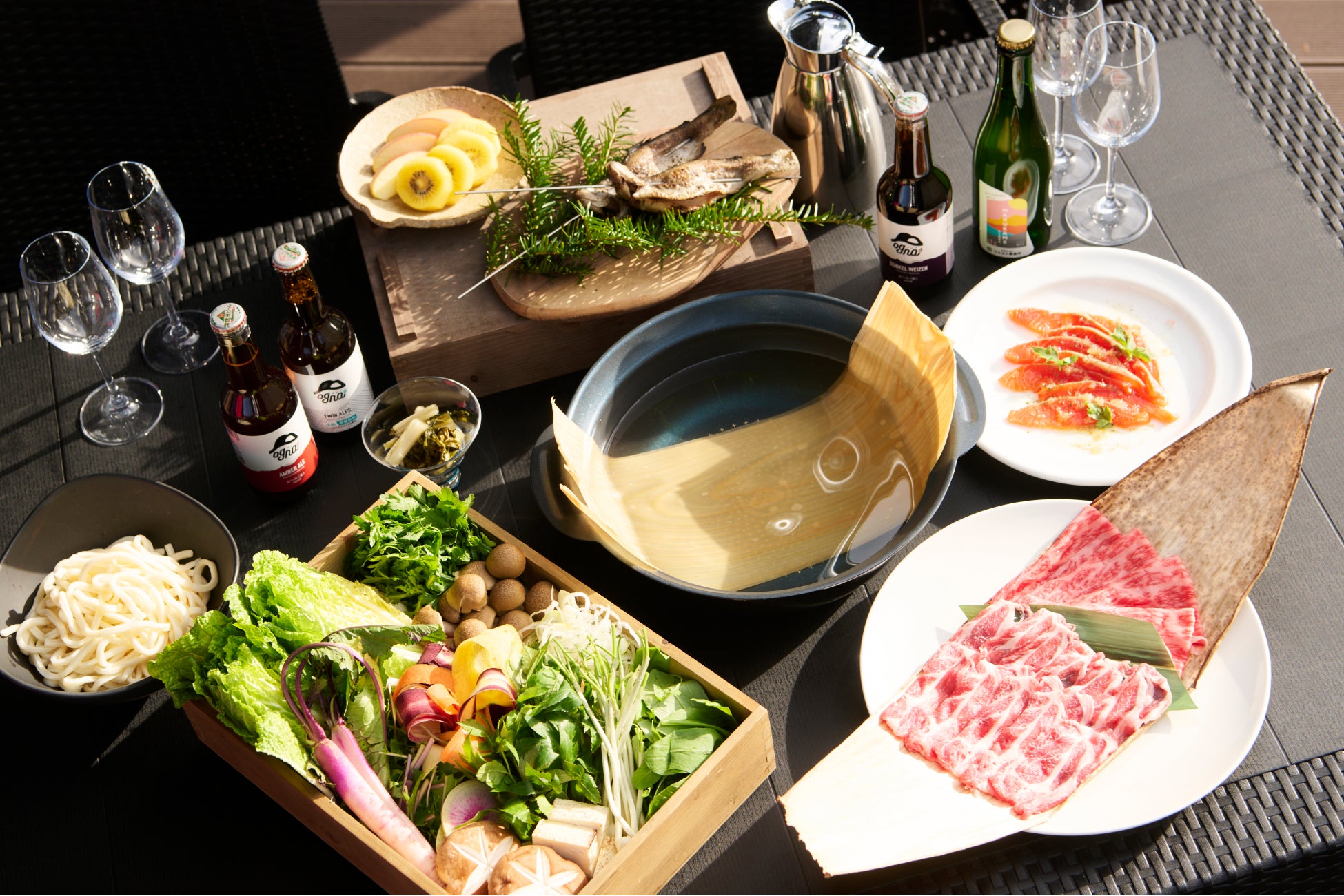 木の香りが漂うリラックス空間であたたかグランピング!「アルプスBASE」が冬限定の鍋メニューを販売開始