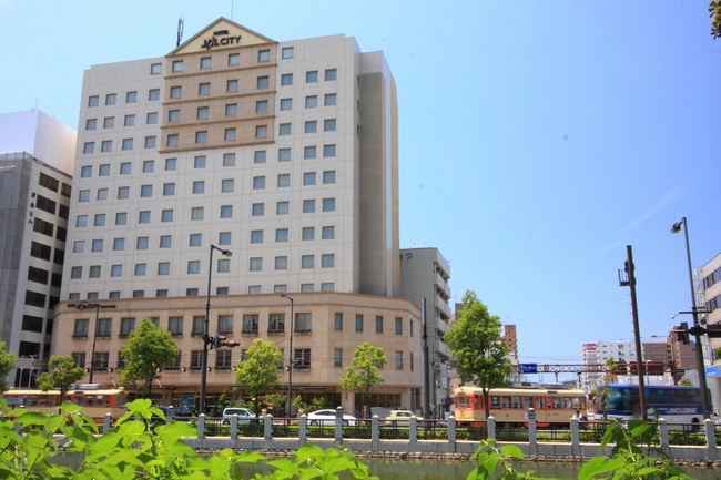 ホテルJALシティ松山は2000年8月に開業し今年10周年を迎えたホテル。161室の客室を6月にリニューアル。客室からは松山城が一望できる。宴会場・会議室が6会場、レストランなどを完備した松山のシティホテル。松山空港からホテルまで車で15分、リムジンバスで17分(¥400)、繁華街まで徒歩10分ほどの便利な立地。