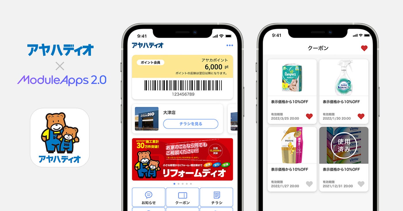 株式会社NTTドコモのマーケティング分野における新規事業型子会社である株式会社DearOne(本社:東京都港区、代表取締役:河野 恭久、以下:DearOne)と滋賀県を中心に25店舗のホームセンターを展開する株式会社アヤハディオ(住所:滋賀県大津市、代表取締役:増本敏幸、川村洋輝、以下:アヤハディオ)は、DearOneが提供する国内最大級の伴走型アプリ開発サービス「ModuleApps2.0(モジュールアップス2.0 https://moduleapps.com/ )」を活用した、「アヤハディオ公式アプリ」を共同開発しました。