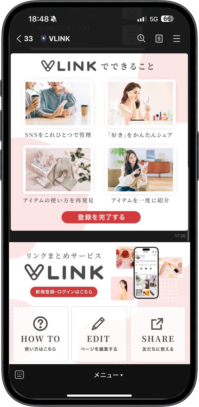 VLINK公式LINEアカウントからかんたんログイン・編集が可能!