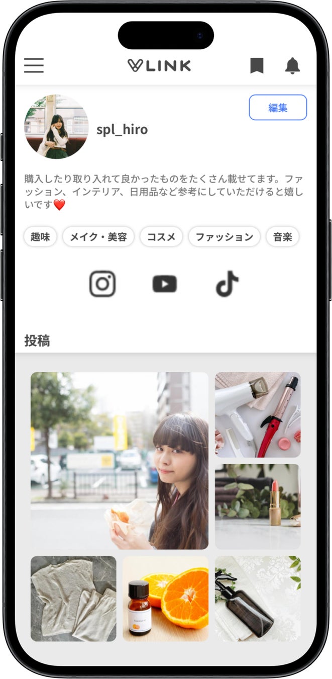 インフルエンサーは自身のSNSプロフィール欄などにVLINKページのリンクを配置することで、エンドユーザー はVLINK上でインフルエンサーの活動内容やおすすめしている商品などをまとめて閲覧できます。そのため、自身の活動をより知ってもらえる機会を提供することが可能です。