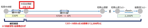 ※参考 : 「南海フェリー➡南海電鉄➡泉北高速鉄道」と乗継される場合