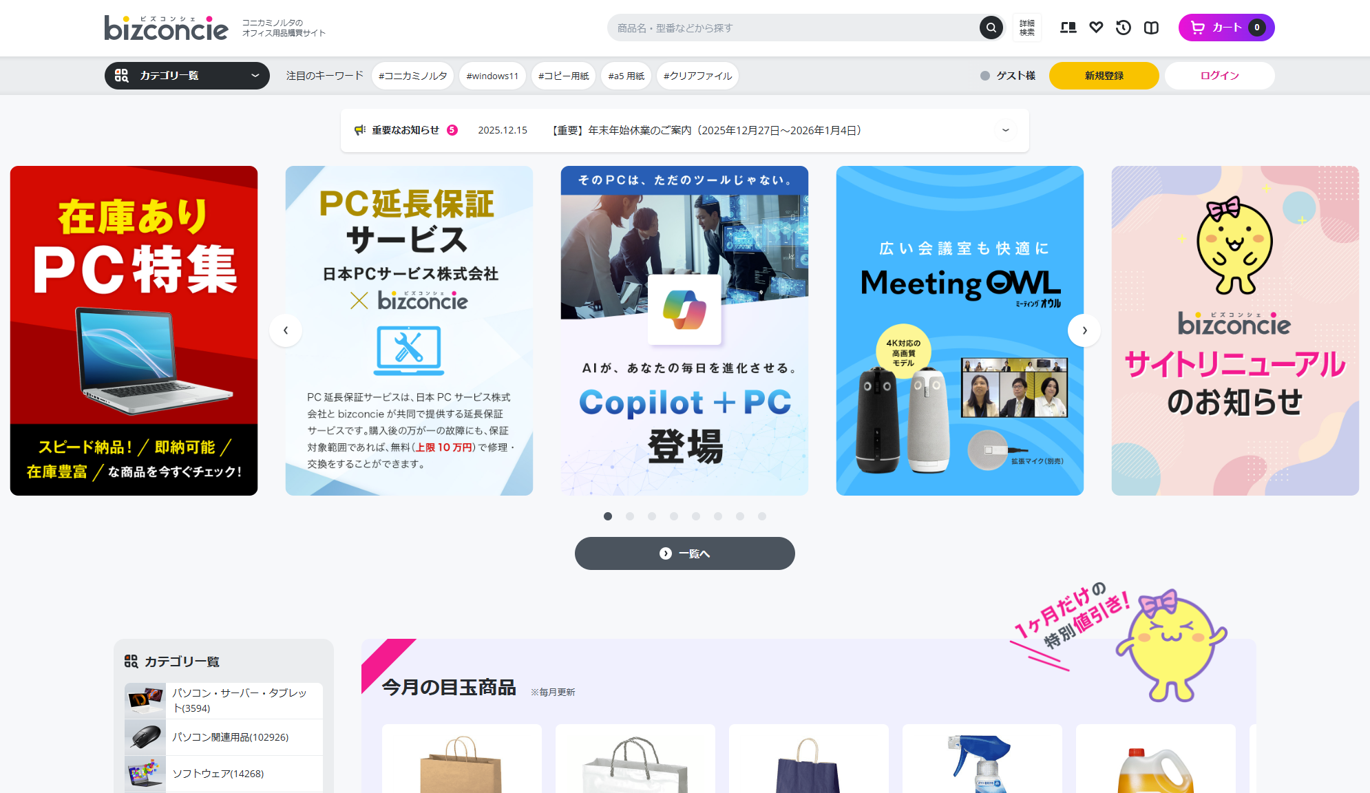 コニカミノルタジャパン社は、2014年より弊社のECサイト構築プラットフォーム「ecbeing」を採用し、10年以上に渡り法人向けオフィス用品購買サイト「bizconcie(ビズコンシェ)」を運用してきました。