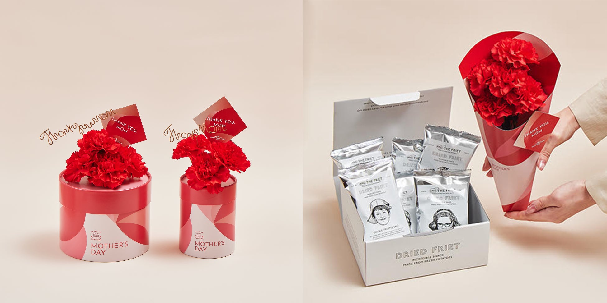 フラワーギフトとお菓子のセットもラインナップ豊富にご用意。最高のフレンチフライを追究するフレンチフライ専門店「AND THE FRIET(アンド ザ フリット)」のドライフリットが楽しめるギフトボックスと、上品で華やかなクレープ型のブーケをセットでお届けする数量限定ギフトが登場。 こだわりの素材を使用し、ゆっくり時間をかけてサクサク食感を引き出したプレミアムスナックとブーケのセットは、グルメなお母さんへのプレゼントにおすすめです。