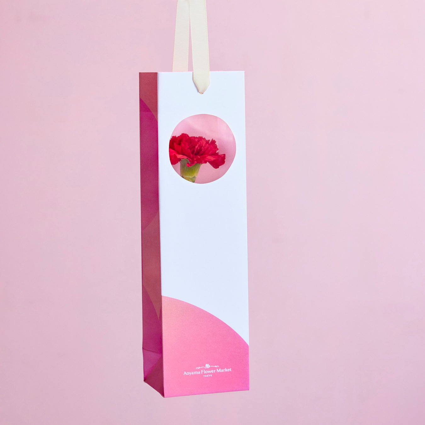 カーネーションが窓から覗くペーパーバッグのギフトは、肩肘張らないプレゼントにぴったりです。