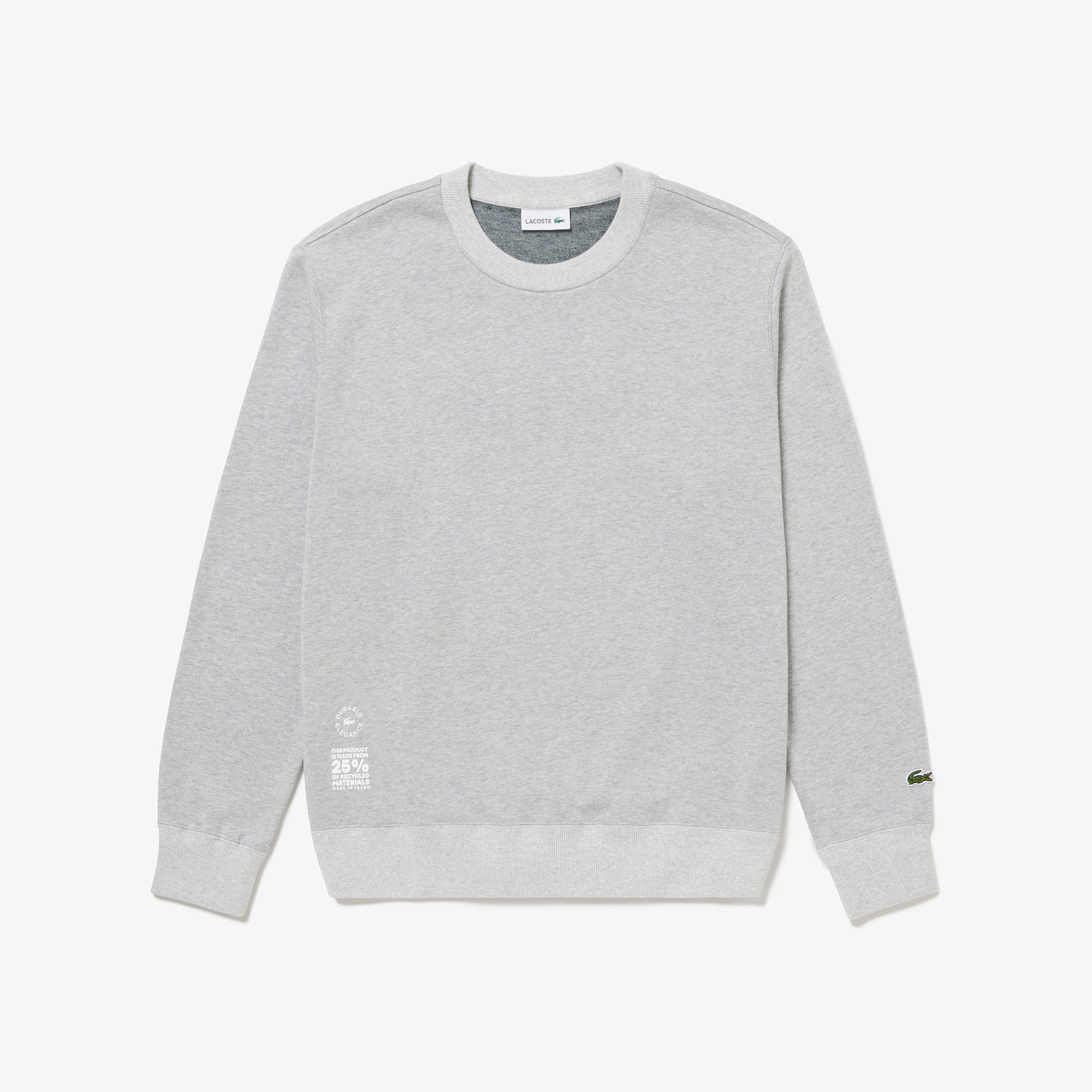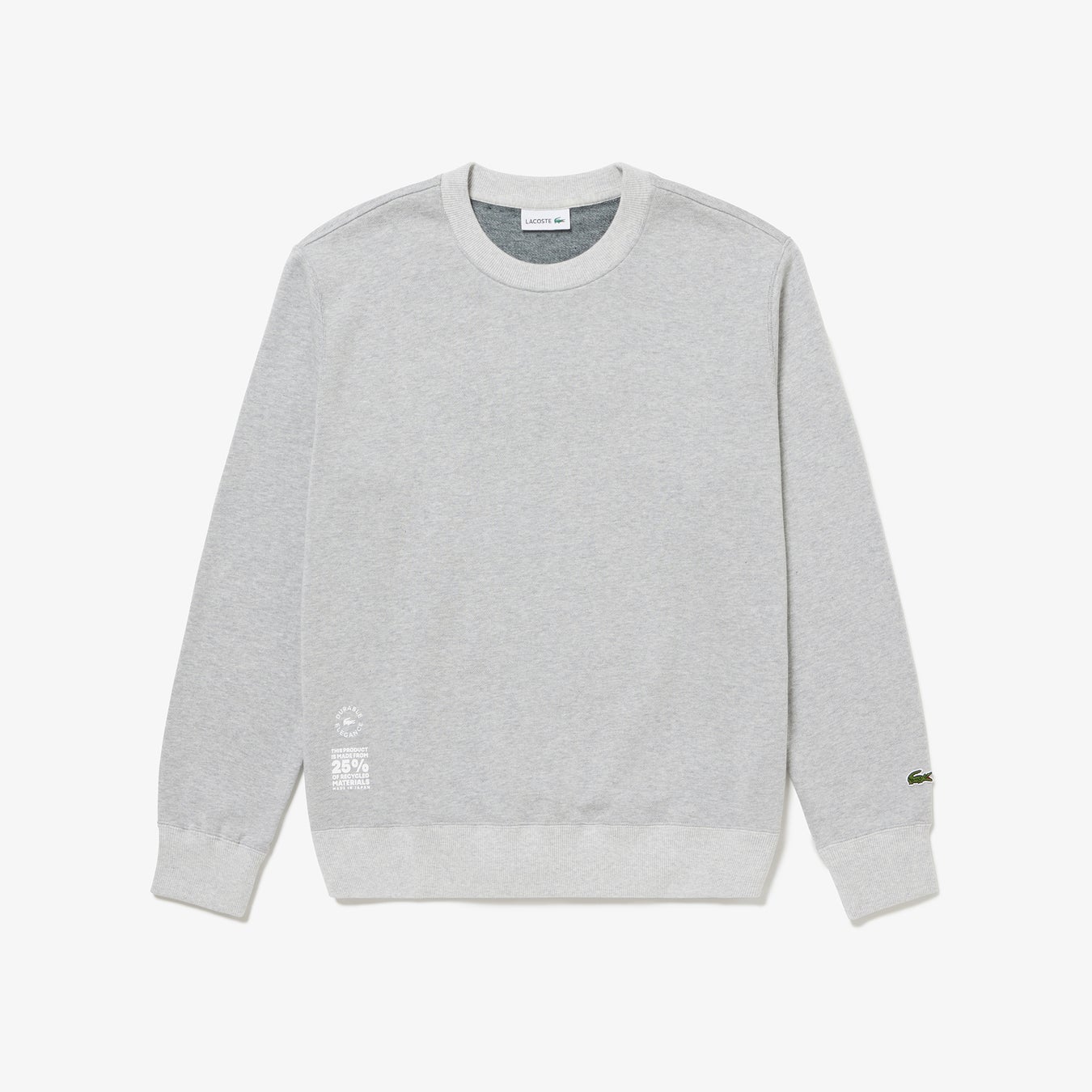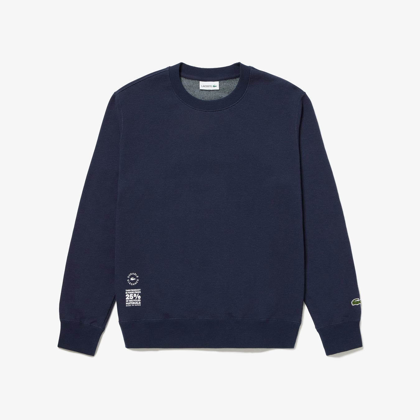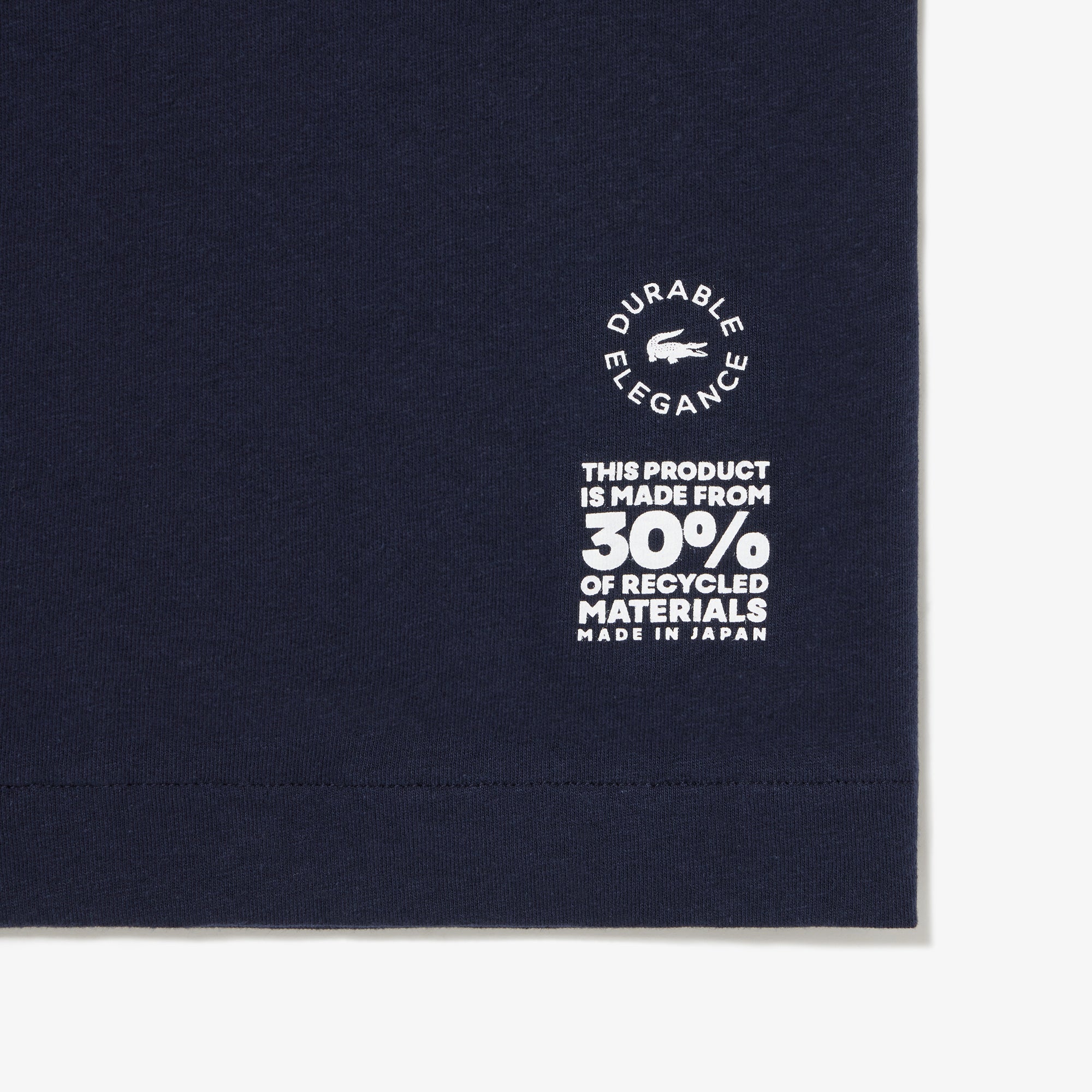 今回、発売となる「AKITA 25 スウェットシャツ」と「AKITA 30 Tシャツ」は、秋田にあるラコステの工房「VALMODE(ヴァルモード)」で製造。この工房では、ラコステを代表するポロシャツL.12.12を作っており、製造中に、型紙からポロシャツのパーツを裁断する際、残布と呼ばれる生地の余りが出てきます。「AKITA 25 スウェットシャツ」と「AKITA 30 Tシャツ」の糸は、それぞれ25%と30%、その残布をリサイクルして作られています。残布はこれまで、車の内装品の一部として再利用されてきましたが、この度、初めてTシャツとスウェットとして再利用。商品としての風合いや品質のバランスを考え、レギュラーコットンにこのリサイクルコットンをブレンドしてTシャツやスウェットの生地を作製しました。製品の作り方や素材の調達方法から素材の開発まで、ラコステは「エレガントな未来へ」という言葉のもと、地球環境のサステナビリティのために様々な取り組みを行っています。リサイクル糸を使ったこの「AKITA 25 スウェットシャツ」と「AKITA 30 Tシャツ」も、その取り組みの一環です。