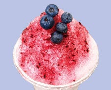 不揃いのため市場に出荷できなかった旬のブルーベリーを使用した、限定のかき氷。カメヤ食堂のおいしい氷と一緒に楽しめる一品。