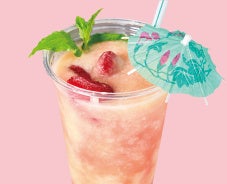 不揃いのため市場に出荷できず、冷凍保管していたいちごを使用した、フローズンモクテル。いちごの甘酸っぱさが夏にぴったりの一品。