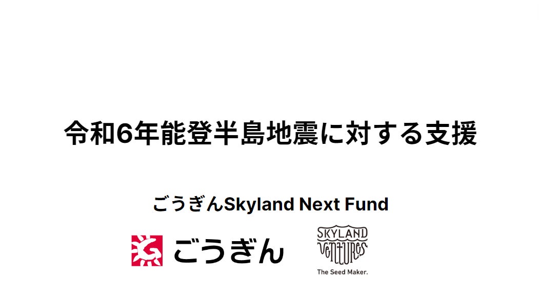 Skykand Venturesは『ごうぎんSkyland Next Fund』として『企業版ふるさと納税』を活用し石川県に対し寄付を行いました。スタートアップの領域を広げ、日本地域との連携を大切にする「ごうぎんSkyland Next Fund」として、今回のような状況下で寄付活動を始めとした貢献活動を行うことは、課題解決を責務とするスタートアップ業界の一員としての重要な役割であると考えております。