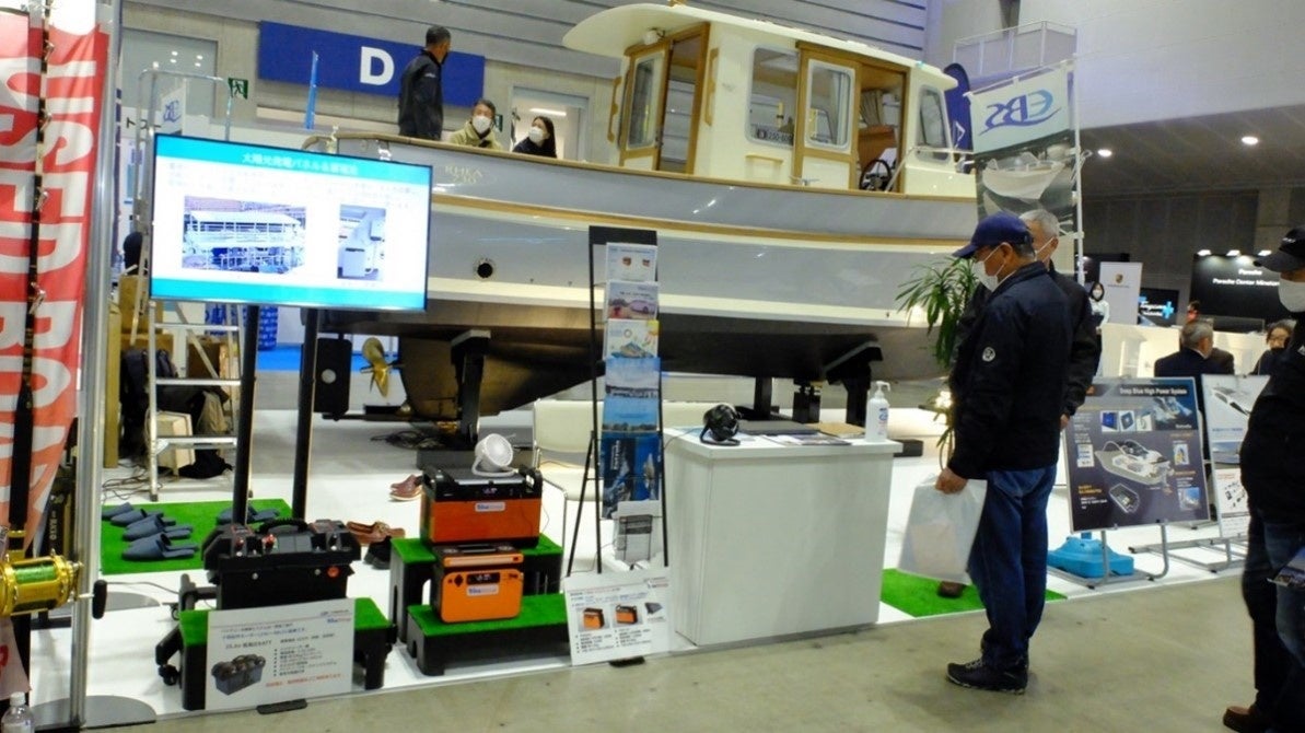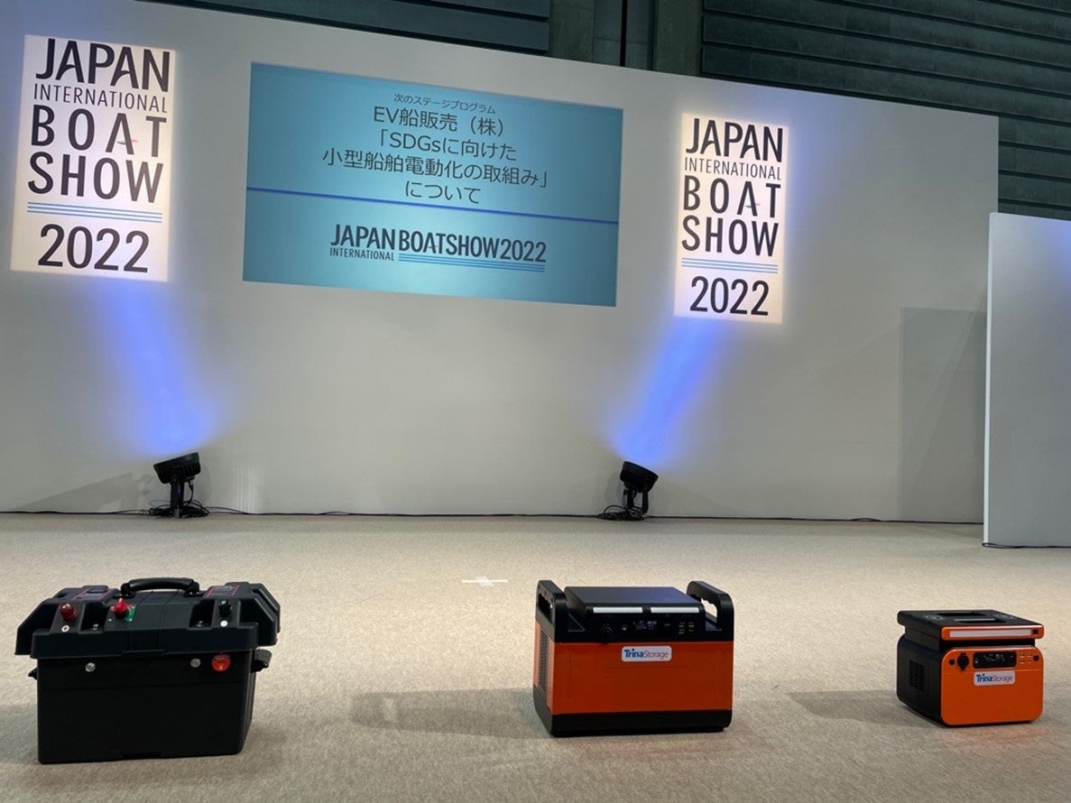トリナ・ソーラー、ジャパンインターナショナルボートショー2022のEV船販売株式会社のブースにてポータブル蓄電システムの全ラインアップを展示