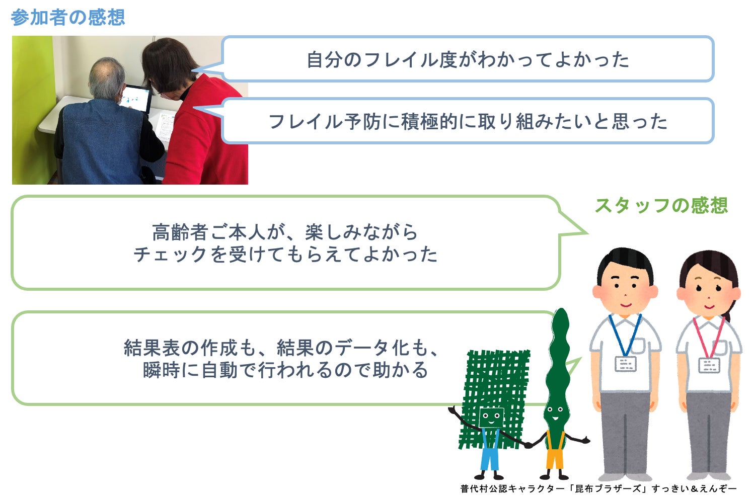 令和4年度からスタートした「みんなの保健室事業」の一環として令和5年2月22日(水)に、フレイル早期発見システム「ASTERⅡ」啓発版を使い、高齢者へのフレイル度チェックを実施いたしました。