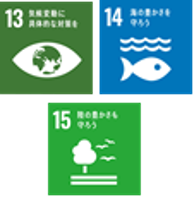 目標13「気候変動に具体的な対策を」、目標14「海の豊かさを守ろう」、目標15「陸の豊かさも守ろう」